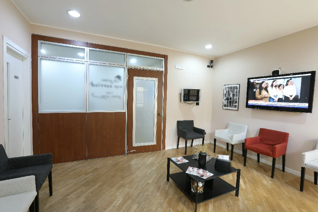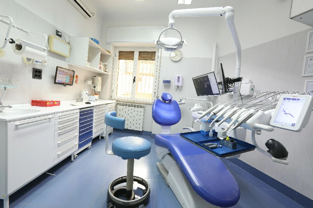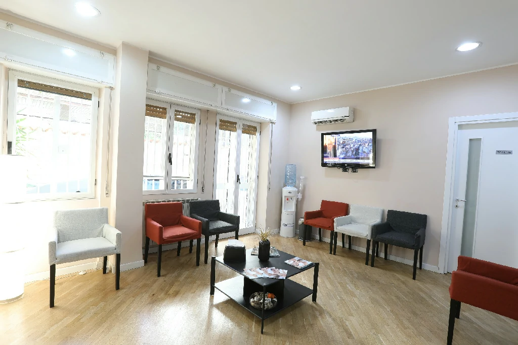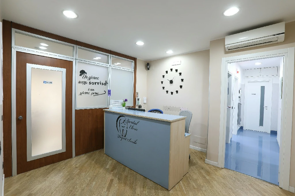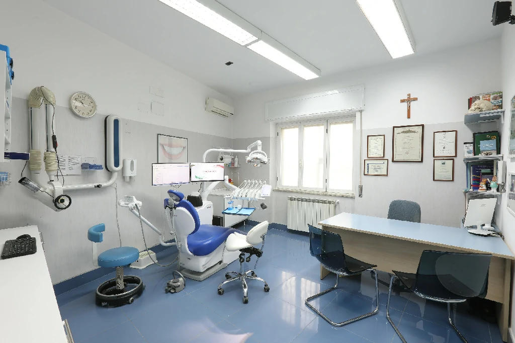 Lo studio si estende per 100 mq ed è dotato di tre poltrone operative, stanza di sterilizzazione, sala raggi e un piccolo laboratorio. Per l’accoglienza dei pazienti è presente una comoda sala d’attesa e una reception all’entrata dello studio
