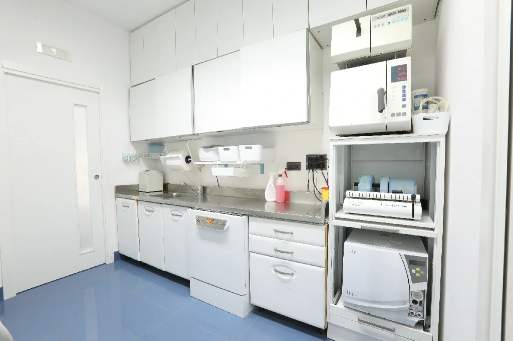 Nell’area sterilizzazione sono presenti 3 autoclavi e un termodisinfettore, per cui le procedure di decontaminazione, disinfezione e sterilizzazione sono assolutamente efficaci e monitorate con appositi test sulla funzionalità delle attrezzature e su ogni singolo ciclo di sterilizzazione: Tutte le precauzioni adottate rispettano gli standard nazionali ed internazionali e tutti gli operatori dello studio sono costantemente aggiornati sui protocollo, oltre a utilizzare materiale monouso dove non si possano utilizzare apparecchiature e strumenti sterilizzabili.